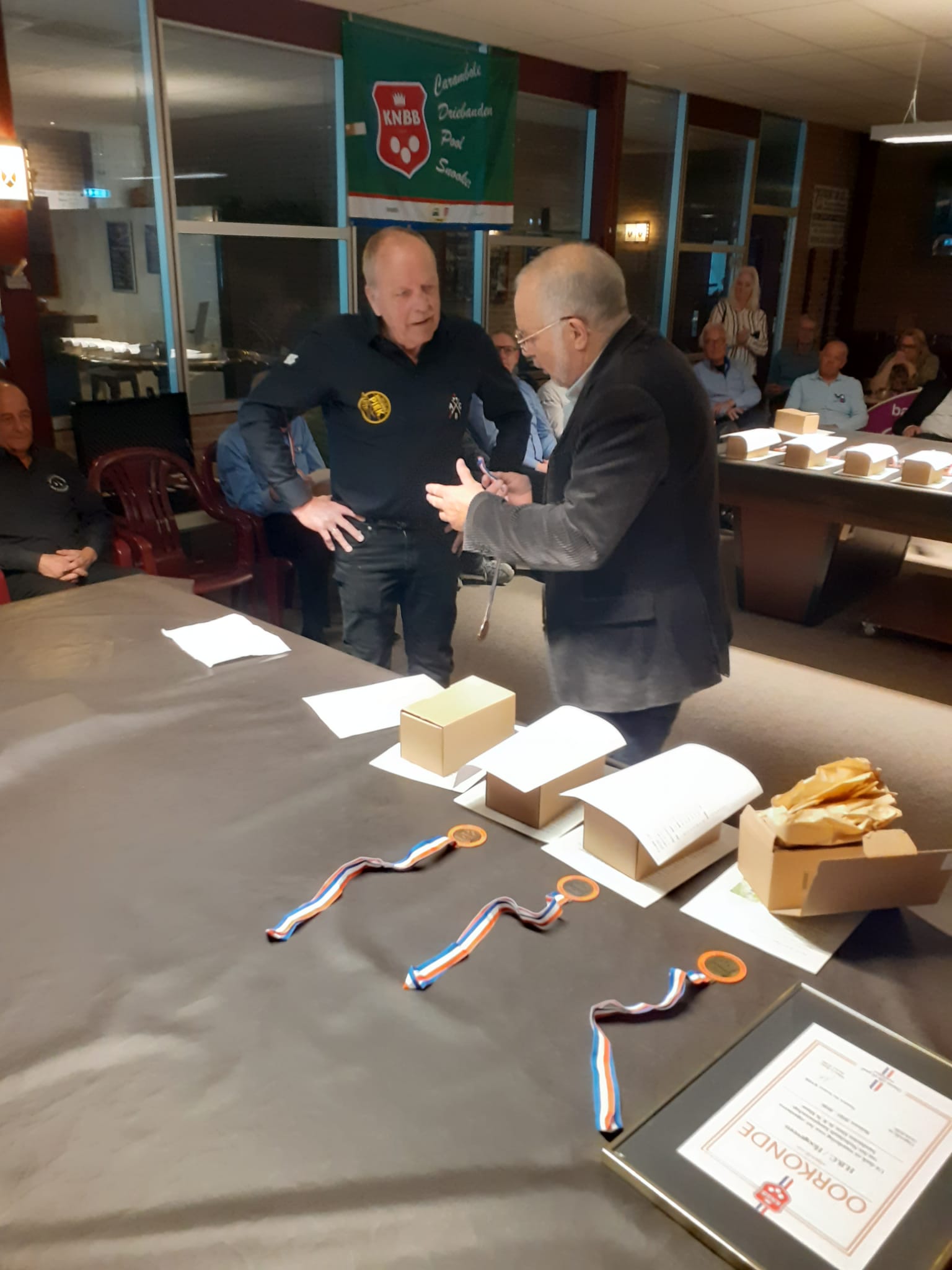 In het weekend van 14 en 15 februari 2025 had De Hollandse Club de organisatie van de districtsfinale Bandstoten 3e klas. Dat je bij een finale op tijd moet zijn hadden een paar mensen nogal ruim geïnterpreteerd en kwamen een uur te vroeg aan de, nog gesloten, deur van het biljartcentrum rammelen 🙂