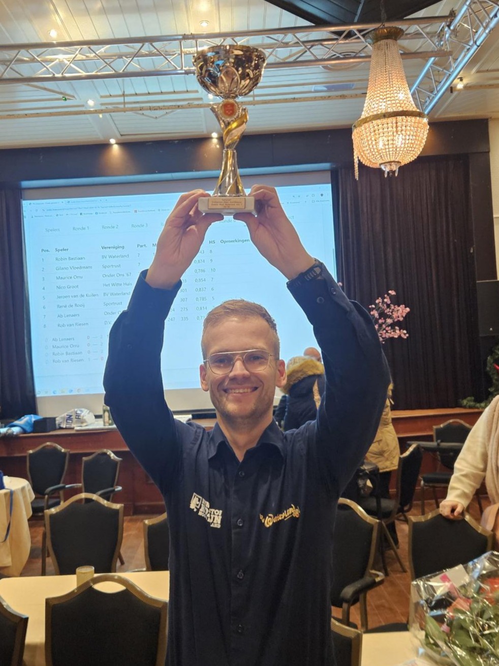 Al met al mag worden geconcludeerd dat Robin een meer dan verdiende gewestelijk kampioen is. Met deze titel heeft hij zich geplaatst voor de landelijke finale driebanden klein, die op 23, 24 en 25 januari in Slootdorp wordt gespeeld, waar hij ons gewest zal vertegenwoordigen.