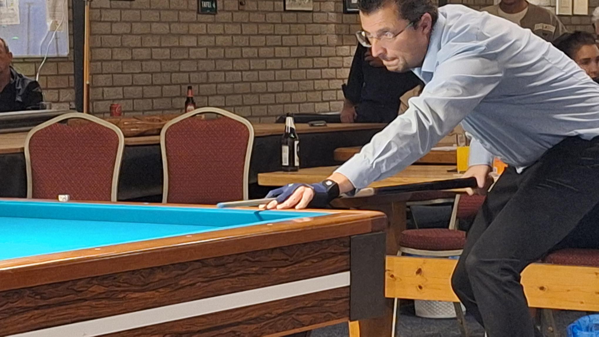 Piet won uiteindelijk in 34 beurten terwijl Viljo bleef steken op 13 caramboles.